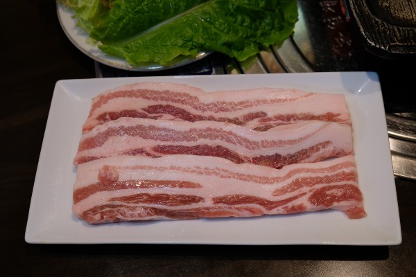 “All our meat is domestic Japanese,” said Mr. Kinoshita. “The beef is A4 rank wagyu, while the fat on Japanese pork is sweet, something I like very much.” The samgyeopsal comes in two versions, thick cut or thin. This is actually pretty thick! It’s 1,408 yen per person, with a minimum order of two people. The above photograph is a two-person serving. There’s also a thin cut version at 1,078 yen per person.