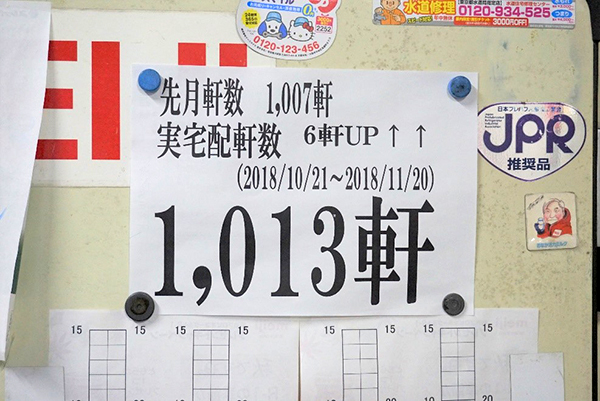 According to Ms. Murakami, who keeps a close check on the monthly figures, the team delivered Meiji’s milk-based products to 1,013 households in November, an increase of 6 over the previous month.