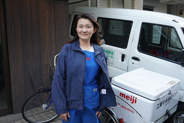 In my hometown in England, the sight of milk being delivered to your doorstep is increasingly rare due to competition from supermarkets and the “milkman’s” unsociable working hours. In Koto Ward, at Meiji’s Kotochuo Takuhai Centre, the Japanese equivalent of the milkman is still going strong.