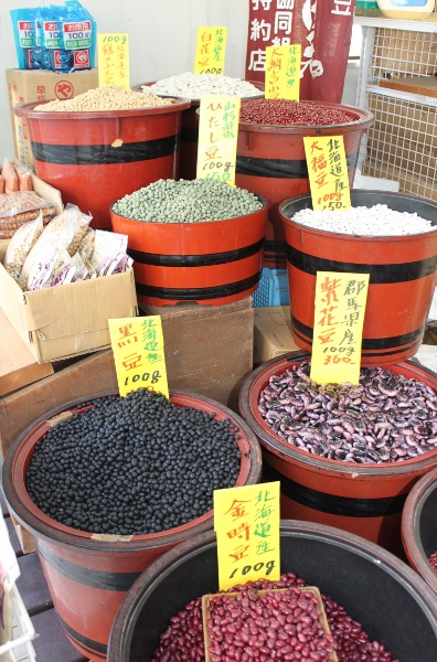 “Around 35 years ago, my husband worked in a company dealing with beans. Then, he decided to run his own business,” explained Mrs. Shimoyama. In their shop, Mrs. and Mr. Shimoyama sell mainly beans produced in Japan. Corn, lentils and the small green beans are imported; otherwise, all the products come from Japan.