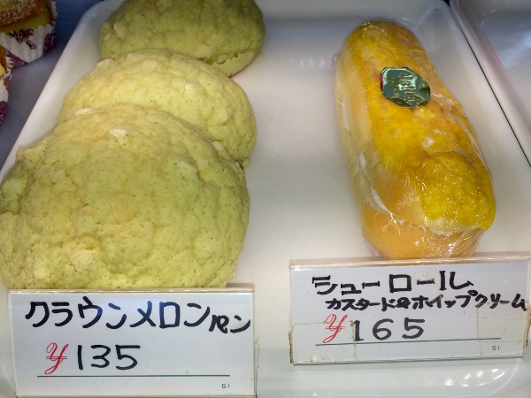 No respectable Japanese bakery is ever without that great favourite, the ubiquitous “melon pan”. On the right is a custard and whipped cream chou roll. Don’t they look great!
