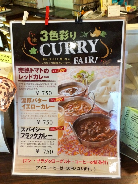 In addition to the breakfast sets, Meika Seven also offers a lunch menu. In summer one can choose from three kinds of curry with a big naan, salad or yogurt, and tea or coffee for just 750 yen. From autumn, stew sets are available.