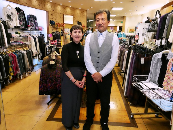 Located on a lively shopping street near Ojima Station, Mode Salon Yayoi specializes in high-quality and elegant clothes for women. The owners, Mr. and Mrs. Naito, have worked together for 33 years at the shop. In the beginning Mr. Naito’s parents owned the shop for 47 years. Mr. Naito told me he had studied the fashion design in Paris and worked for brands like “Chantal”. He has also taken many trips to Italy to attend the fashion events. This explains Mr. Naito’s ability to speak a bit of French and Italian.