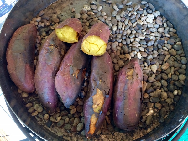 Not content with creating confectionery Mr. Homma and his charming wife also sell that great winter favourite, baked sweet potatoes. These are no ordinary sweet potatoes, though. “These are called Silk Sweet, from Chiba Prefecture and they’re the best you can buy,” says Mr. Homma. “They’re much softer than the Beni Azuma type and far sweeter.”