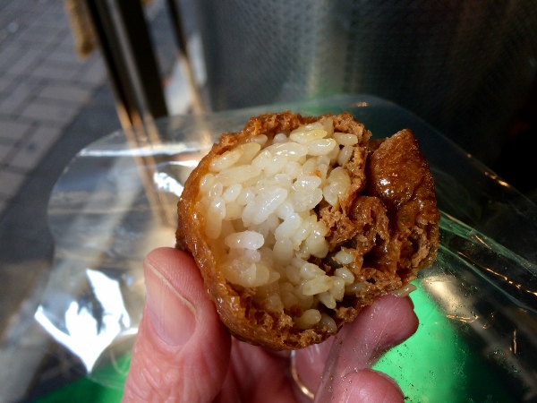 Mr. Homma also makes sekihan (azuki bean rice) and oinari. Oinari are a great treat; pouches of deep fried tofu skin simmered and stuffed with sweetened and vinegared rice. Mr. Homma simmers the skins three times over a period of three days, which creates an incredibly rich, strong flavour. “That’s the real taste of Fukagawa and Old Edo,” he says. He’s right; the rich savoury flavour and dark colour of the skins balance perfectly with the slightly sweet rice. Delicious, and a world away from the rather bland oinari sold in many places.