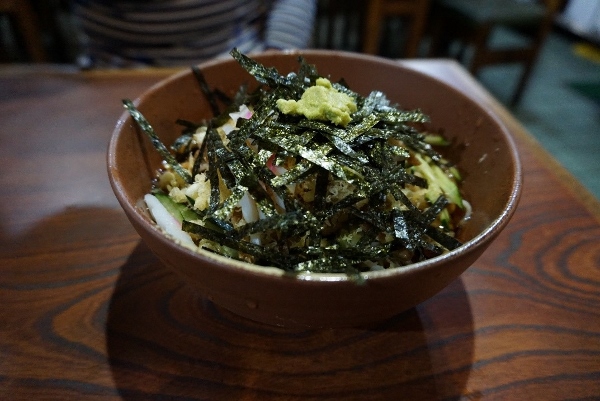 And with the yellow crates of beer and soft drinks stacked against one wall, and the television flickering away high in one corner, the whole place has a relaxed, un-rushed atmosphere; what is called “at home” in Japanese.