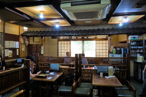 The restaurant’s cool, dark, traditional interior offers a welcome escape from the summer heat and noise of Toyocho.
