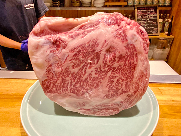 As you’d expect of a native of Matsusaka, home of one of Japan’s most celebrated beef brands, Mr. Nagai knows his meat. “I want our customers to be able to enjoy fine quality meat at the peak of freshness,” he said, and plonked an enormous block of Kuroge beef on the counter. The meat, which had come direct from the wholesaler in Yokkaichi, Mie Prefecture, is cut when ordered by customers to maintain the flavour.