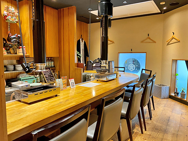 The first floor has a stylish counter area, behind which Mr. Nagai works his magic in close proximity to the customers. It’s a comfortable, relaxing interior with three grills and half a dozen seats that create an intimate atmosphere.