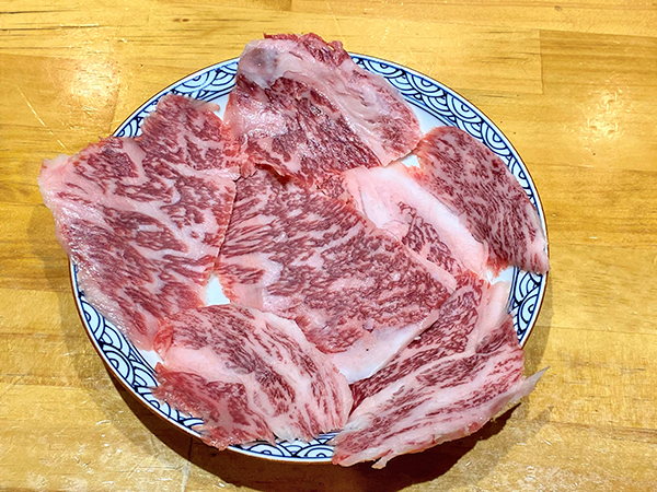 The menu at Nagai is extensive, featuring several cuts of Matsusaka beef such as short ribs (kalbi) and even chateaubriand, if it’s a special event. Offal (horumon in Japanese), long popular in western Japan, has made inroads in the east in recent years and also features heavily on the menu. As Mr. Nagai explained, “Horumon is the local soul food in Matsusaka, where we eat it with a taré sauce mixed with fermented bean paste (miso). Chicken is also very popular too.” The miso sauce horumon (1,680 yen) uses the dark red, strongly flavoured hatcho miso from Aichi Prefecture and tamari soy sauce from the Tokai area, of which Mie Prefecture is a part. The chicken is reasonably priced at 680 yen per plate.