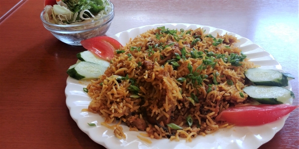 Biriyani is an Indian staple of rice cooked slowly with spices, potatoes, and sometimes nuts and fruit (chicken, mutton, or vegetarian for 1,250 yen). This was the first time I saw it on a menu in Japan.