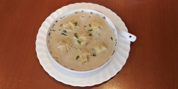 Everest Momo (700 yen) is a bean soup with dumplings, available with chicken or vegetable filling.