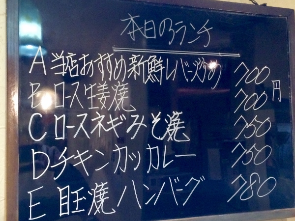 “We offer five different lunch menus a day: stir-fried liver, pork loin with ginger, and pork loin with scallions and miso are available every day, while two other dishes are prepared depending on seasonal ingredients. Today it’s chicken curry, and a hamburger topped with a fried egg.”
