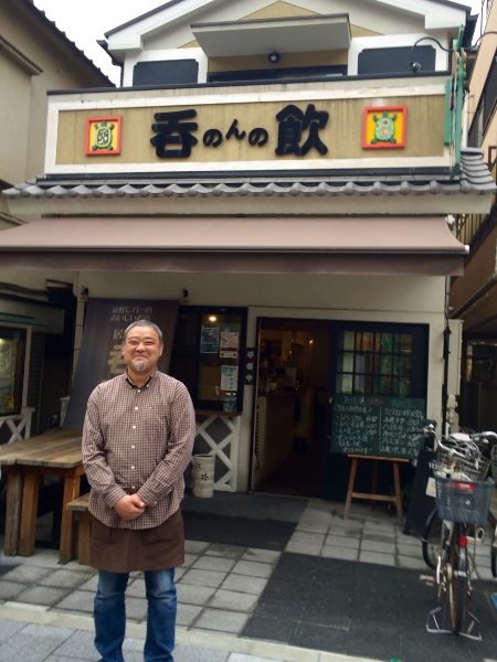 The Kameido Katori Kachi-un Shopping Street is home to a host of interesting establishments. On the right side of the street as you head towards the Katori Shrine stands Nonno, a cafe and Japanese pub (“izakaya” in Japanese). On a recent afternoon the proprietor, Mr. Motogi Miyanaga, spared a few minutes to chat about his family business.
