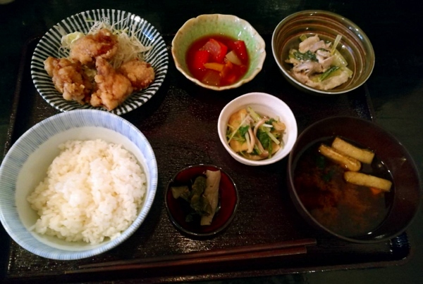 For lunch, the restaurant offers different sets of dishes like the famous obanzai which you can match, for example, with some crispy and juicy karaage (Japanese crispy fried chicken) embellished by a small cabbage salad with delicious yuzu (Japanese citrus fruit) dressing. All the sets contain some rice, miso soup and various obanzai such as vegetables and mushrooms salad, Southern European style “ratatouille” and a small chicken and vegetables salad. Ms. Nagumo will kindly advise you on an easy-to-drink Japanese sake which will fit perfectly with your meal.