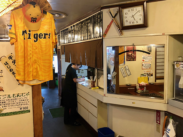 “As children we used to eat monjayaki cooked on a hot plate at the corner sweet shop (dagashi-ya) for our afternoon snacks,” remembers the warm-hearted and kindly Ms. Masaki. “I used to sneak eggs out of the fridge and take them down to be mixed into the batter. The monja cost around 20 yen apiece, I think. There was also a man who came around pulling a two-wheeled cart with a hot plate on it. He’d stop and cook up monja for the kids and local people. Around his neck he wore a small drum that he’d beat to announce his arrival. Don-don-don, like that. As a small kid I couldn’t say don-don; it came out as dondo so that’s what my parents named the restaurant. It’s real Tokyo old-town food. My husband hails from Ibaraki Prefecture near Tokyo and says they didn’t have monja there when he was a child.”