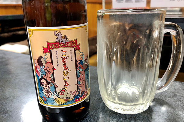 For junior customers, of which there are many at weekends as local families are the principal customers, there’s this Kid’s Beer (kodomo no biiru) at 385 yen a bottle. It’s not beer of course, but a refreshing apple soda that even comes with its own kid-sized glass.