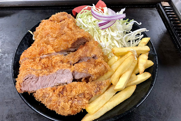 This frying style cooks the thick cutlet right through while creating the crispy batter we all love. It’s wonderful; thick and juicy with remarkably soft pork inside the crisp batter. The plate, with a handful of fried potatoes and some salad, is more than enough for two to share and crazy value at 990 yen for eat-in, 972 yen for take-out. “Some customers come in mainly for the tonkatsu,” said Mrs. Nakabayashi with a laugh.