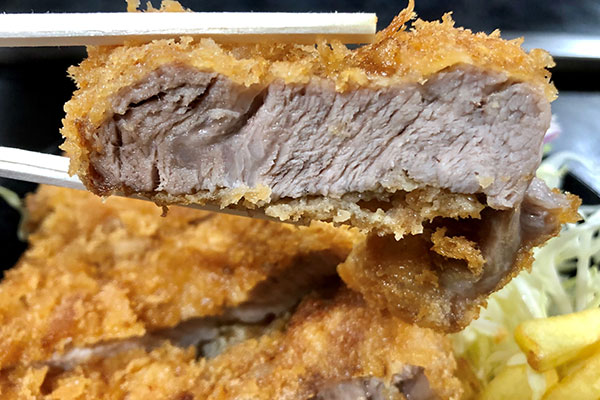 When Mrs. Nakabayashi announced she would cook up one of Nakachan’s popular pork cutlets,  we were taken aback at the sheer size and quality of the prime rib:a whopping 3cm thick and 280g slab of juicy goodness. “Actually this used to be a butcher shop and my husband was a butcher before,” she said. “I worked in the shop for many years too, and our long connection to meat wholesalers is why we can serve high quality meat at reasonable prices. This pork is the best cut for deep-frying!”