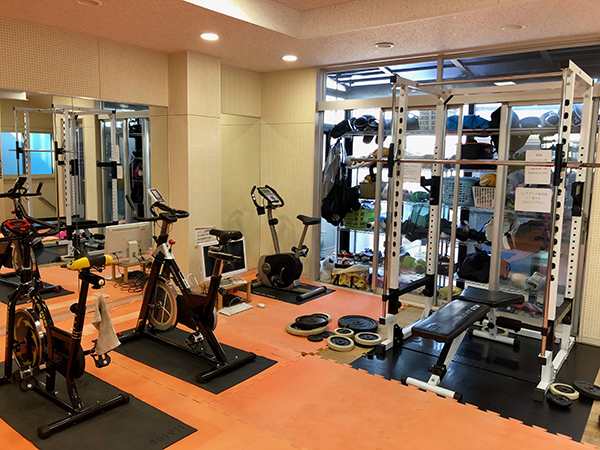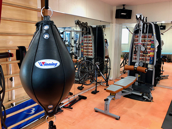 The membership fees are very reasonable: a one-time registration fee of 10,800 yen for everyone and a monthly fee of 10,800 yen for men and 8,640 yen for women. Junior and senior high school students pay 7,560 yen a month. There are also special classes for middle-aged and senior students, the ladies only classes and classes for younger kids. “We’ve got students aged from 3 to 61,” says Mr. Nakagawa. The upstairs machine training gym is available to all members at any time, as is the downstairs training area.