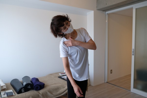 Ms. Yoshida kindly recommends some “homework” exercises to relieve stiff shoulders and other modern ailments caused by poor posture and hours spent in front of a computer.