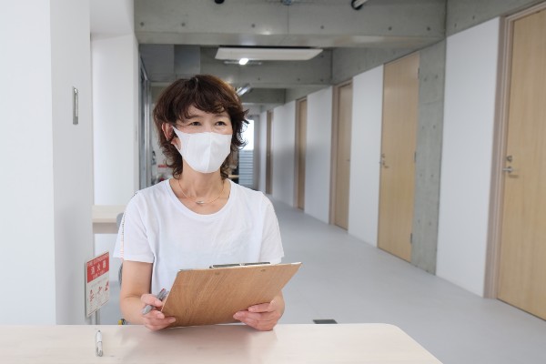Each floor contains several rental rooms with a large communal kitchen and seating area. Blonde wooden tables by the floor to ceiling glass windows are available for meetings. Ms. Yoshida introduces herself and takes us through the beginning programme for a student. “The sessions are called lessons; the customers are students, there’s homework and the ultimate aim is for them to “graduate” so they need only the occasional lesson to maintain health. I’m a qualified walking instructor and a master conditioning instructor; I have an osteopath licence too and have worked for many years as a personal trainer, therapist, and conditioning counsellor in sports clubs and culture schools in Tokyo.”