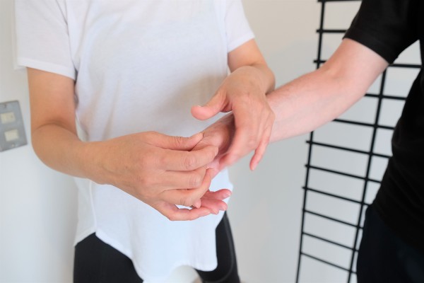 Ms. Yoshida emphasises the exercise of inner and outer muscles. “We have to reset our muscles,” she says, “because we overuse some but under use others in daily life. This creates tension and imbalance which causes problems.” She demonstrates with some simple but effective pushing exercises that work the inner arm muscles.