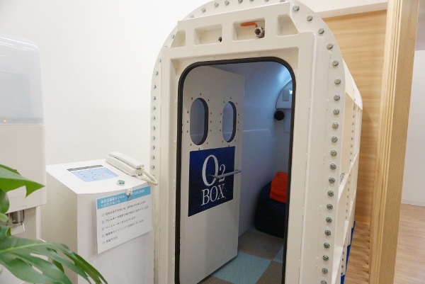 The end wall of the reception area is taken up with an “oxygen room”. This large contraption reminded me of a decompression chamber from an underwater movie, and is apparently not dissimilar. Whilst the patient (or patients – the room can hold 2 people) sits inside the chamber for up to 60 minutes, pressurised oxygen is pumped in, resulting in boosting blood circulation and lowering blood pressure, and is recommended for combatting tiredness and is said to make your skin feel refreshed.