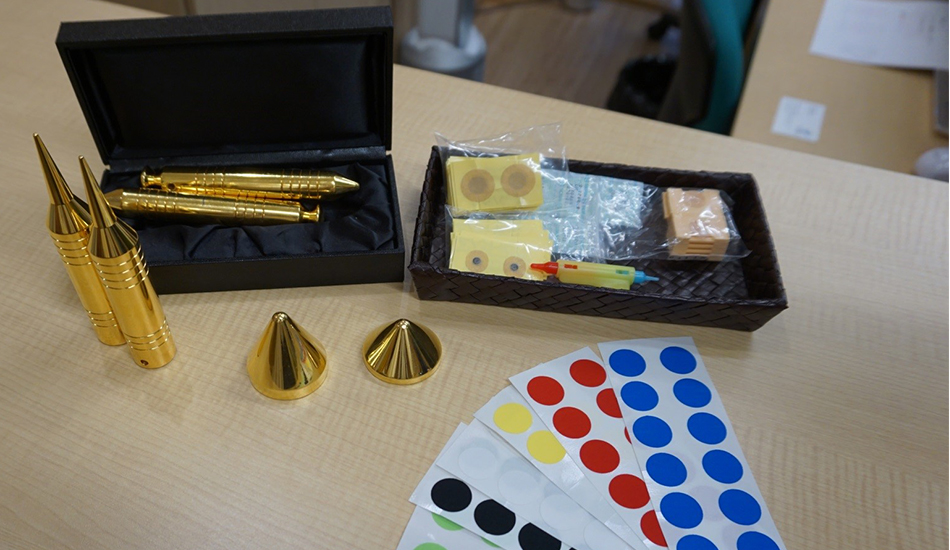 Acknowledging that many people perceive hari to be painful, Mr. Nakamura produced some heavy, metal cylinders with rounded heads and proceeded to demonstrate how these are pressed on the patient’s acupuncture points and lines, but do not pierce the skin (see top photograph). These are effective, particularly for those patients who are frightened of the “needle”.