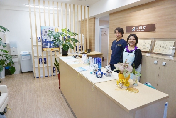 Tenmeido, located close to Shin Ohashi bridge and 4 minutes from Morishita Station, opened its doors in February 2018. Run by Mr. Kazuaki and Mrs. Kumiko Nakamura it offers various traditional and modern treatments incorporating hari and o-kyuu, as well as several other types of remedial therapy. Mr. Nakamura is a qualified hari and o-kyuu practitioner, and worked for 10 years at a local clinic before going independent.