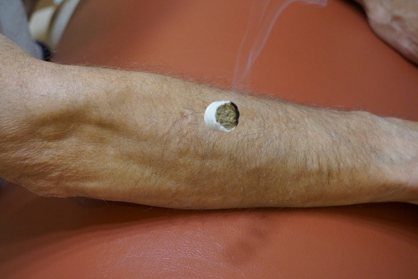 Sitting there, I experienced a sensation of heat on my arm, accompanied by the strong but pleasant smoky smell of the burning moxa. At the end of my relaxing acupuncture and moxibustion “moment” I could certainly move my neck more freely.