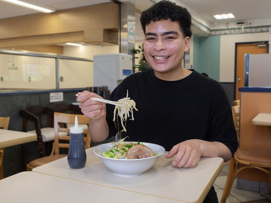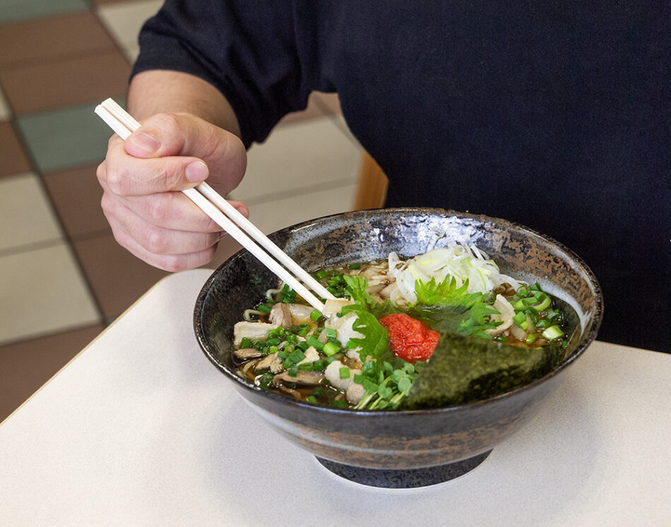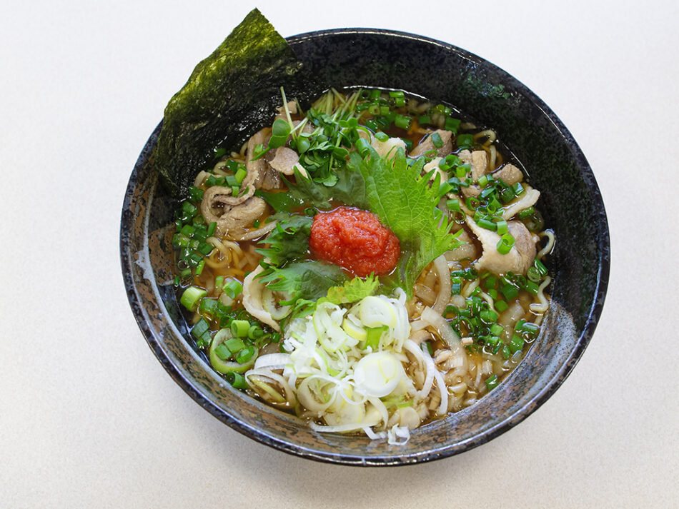 The soup has a distinct depth of flavor that sets it apart from the regular shoyu ramen. When you mix the grated momiji topping in the center of the bowl into the soup as you eat, it combines with the scent of shiso (perilla) leaves, creating a delightful taste with a more Japanese-style essence.