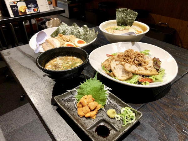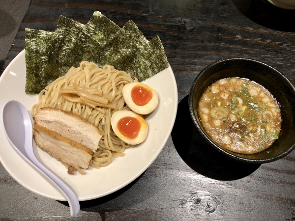 As is customary with tsukemen dishes, the soup is astonishingly thick and savoury. “We created the soup first and then searched for the perfect noodle to match it,” explained Mr. Tanabe. “After much trial and error, we settled on these Hirauchi noodles.” Hirauchi noodles are fat and flat, thick and wavy noodles that hail from the ramen paradise of Kitakata City in Fukushima Prefecture. For the very hungry, sets are available: your choice of ramen with raw egg on niboshi rice or chashu rice, 3 pieces of fried chicken and a small rice, or the fried chicken and one kind of rice. These sets cost an extra 200 yen, 250 or 350 yen.