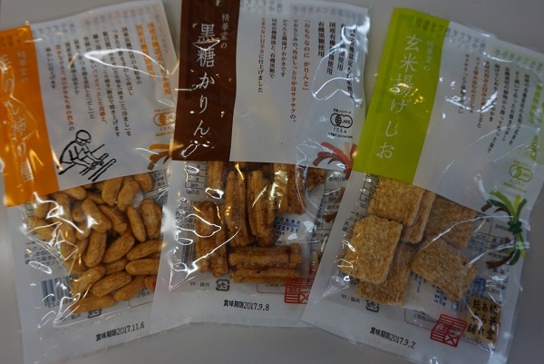 The company is unique in being the only one in Japan that makes rice crackers using high quality organic rice. The rice is cultivated by farmers in Miyagi Prefecture and delivered to Seikado Arare’s factory in the prefecture, where it is combined with other organic ingredients to produce the various types of rice crackers which are distributed throughout Japan from the shop in Kiyosumishirakawa.