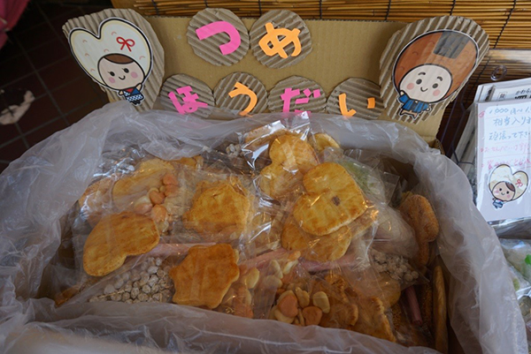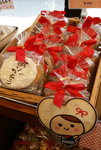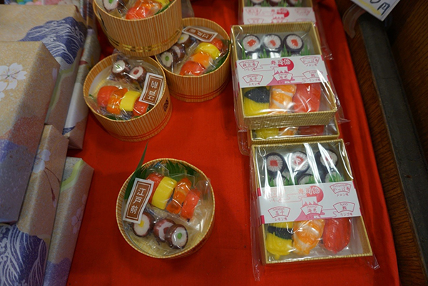 For the foreign visitors the more traditional-flavoured senbei, such as soy and green tea sell well, whilst the novelty sushi “ame” (candy) are also popular.