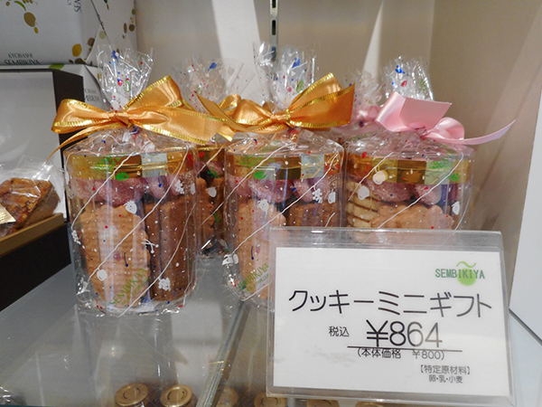 But if you’re not picky about presentation, a good tip is to buy the goods marked “service products (セール品)” These are the products that are somehow visually flawed—cookies that were cracked during transportation, for example—but still tastes the same as their regular counterparts. If you’re looking to sample what Sembikiya has to offer but would like to keep to a budget, definitely look for these!