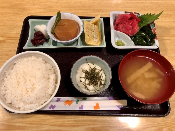 Chikurin attracts many loyal customers who visit every day for the set lunches (teishoku). This is the Muramatsu lunch set, apparently named after a Mr. Muramatsu, the first customer who ordered it. At just 850 yen, it’s tasty, healthy and very filling: big chunks of tuna, sweet egg roll, simmered daikon radish, pickled turnips and eggplant, miso soup with deep-fried tofu skin, rice and the immensely popular grated yam (tororo). At night the lunch sets are upgraded with the addition of another dish and cost 1,000 yen apiece. The extra dishes tend to be deep-fried items, according to Mrs. Nakamura.