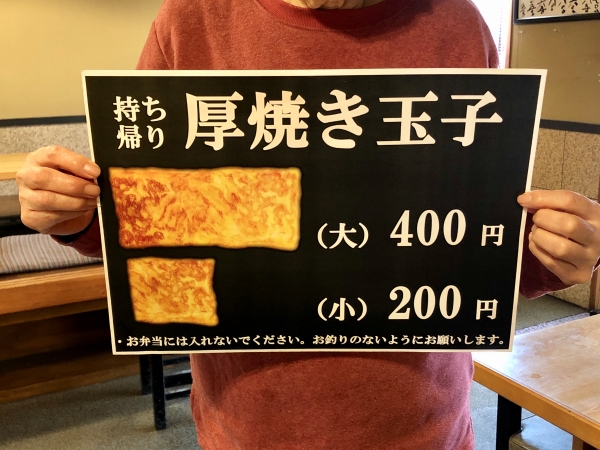 The egg roll is also available to take out. At 400 yen for a large and 200 yen for a small, it’s excellent value.