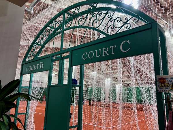 The entrance gates to the courts, in dark green wrought iron, are similar to those found at the recently refurbished Roland-Garros.