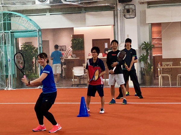One of the most popular classes is the parents/guardians and kids’ class (oyako in Japanese), for children from three up to six years old. The adults can practice with a coach or play while the kids are taken care of by qualified nursery staff in another room. The kids then dance to warm up, before enjoying a fun class with the mini-net, child-size racquets and super soft balls.