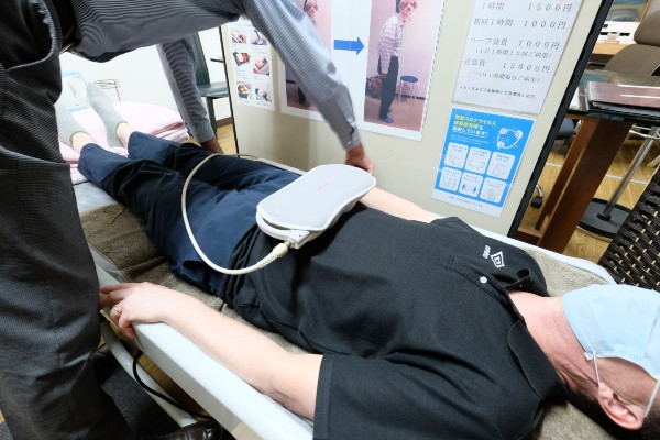 In this case Mr. Iwasaki placed the external device on my stomach. “Most of our customers are in their seventies, although we do have some younger people with innate conditions or problems caused by sports and accidents. Many Japanese women suffer from circulation problems, low body temperature and cold disorder (hiesho) in winter, and this infrared heat treatment is useful for them too,” he said.