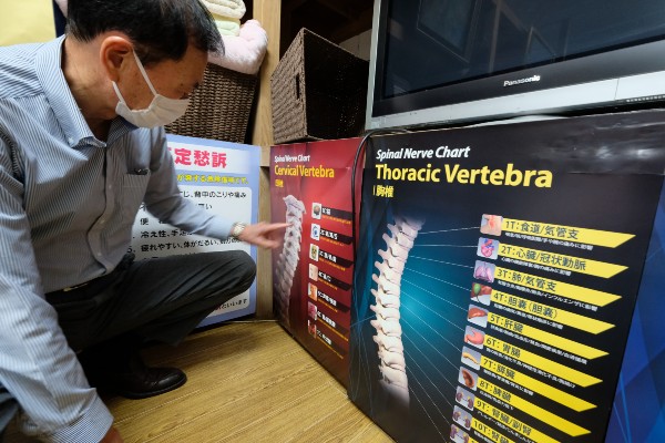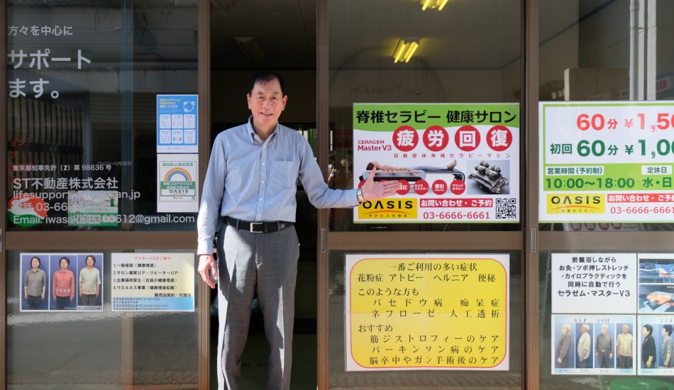 Oasis Spine Therapy Salon uses the marvels of modern technology to bring relief to those suffering from spinal problems and other associated disorders. On a recent sunny afternoon, we dropped into the office of Mr. Takaharu Iwasaki, the trim and youthful director of the business.
