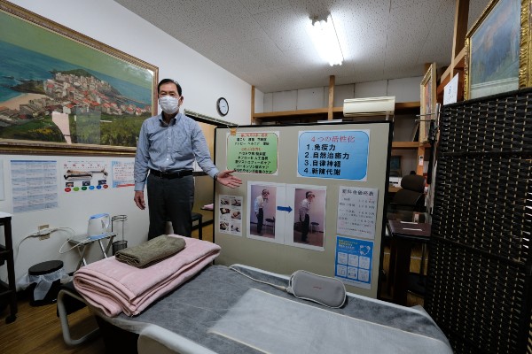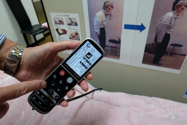 Mr. Iwasaki said, “As medical care improves people are living longer, but for many the quality of life is a problem. By using the automated thermal massager people can straighten their spines, stimulate their autonomic nervous systems, relax muscles, reduce stress, relieve arthritis, improve blood circulation, reduce joint stiffness and much more, all while they’re lying down. We have eight machines in total, customers can rent one for just 35,000 yen a month for a large machine like this, or 20,000 for a smaller one.”