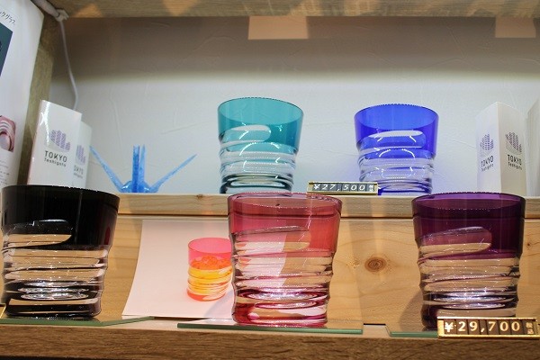 The designs may be traditional but the colours are most certainly modern. These candy coloured Edo Kiriko glasses are favoured by female customers and start at 33,000 yen.