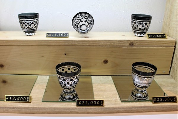 There are several designs of mini glass available. This series begins at 2,750 yen each.