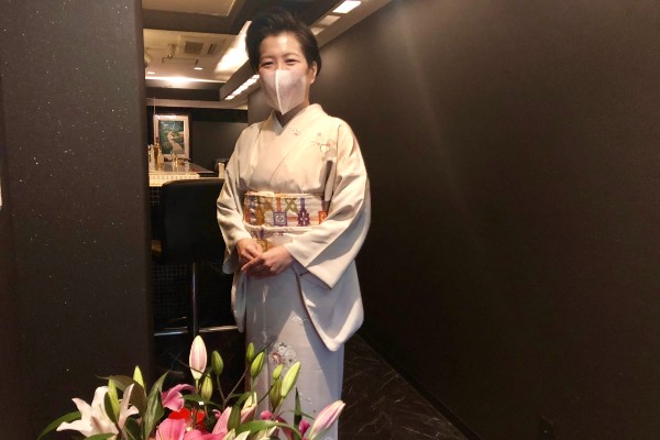 The chic interior is decorated in a dark monotone, with Ms. Suzuki radiant in a stunning kimono. Decoration is simple; a vase of lilies at the entrance and a print on the back wall. While very elegant, Ms. Suzuki is most friendly and welcoming, with an open and candid manner that charmed both myself and my female colleague.
