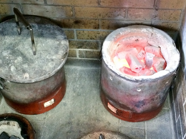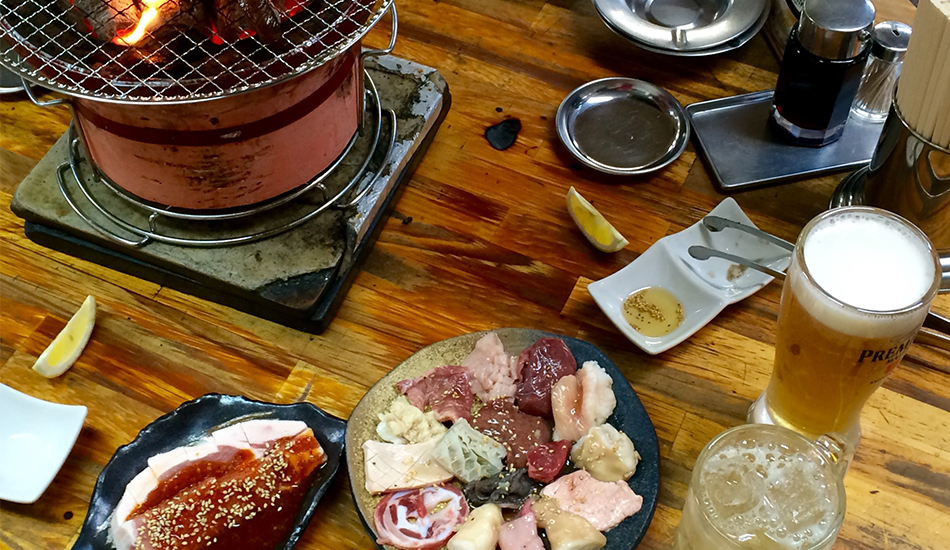 The meat is cooked on metal griddles over shichirin charcoal cooking stoves. Here the staff burns their own charcoal so they’re always ready to go when a new customer enters.