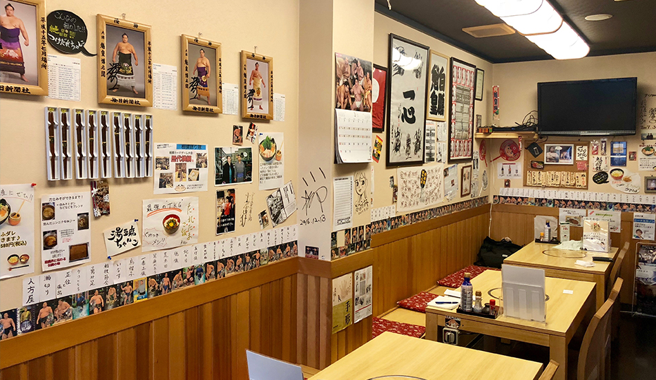 Wrestlers belong to stables (heya in Japanese) where they train and eat together. One of the oldest is Tomozuna, which can trace its history back to at least 1777. Mr. Nishino’s father was known as Kaiki during a wrestling career which took him to the third-highest rank of sekiwake. After retiring he was stable master at Tomozuna from 1989 to 2017. When the stable decided to seek larger premises and moved to the Narihira area of Sumida-ku, Mr. Nishino became the proprietor of the remodeled restaurant which opened in 2011, after his own sumo career was ended by retirement.