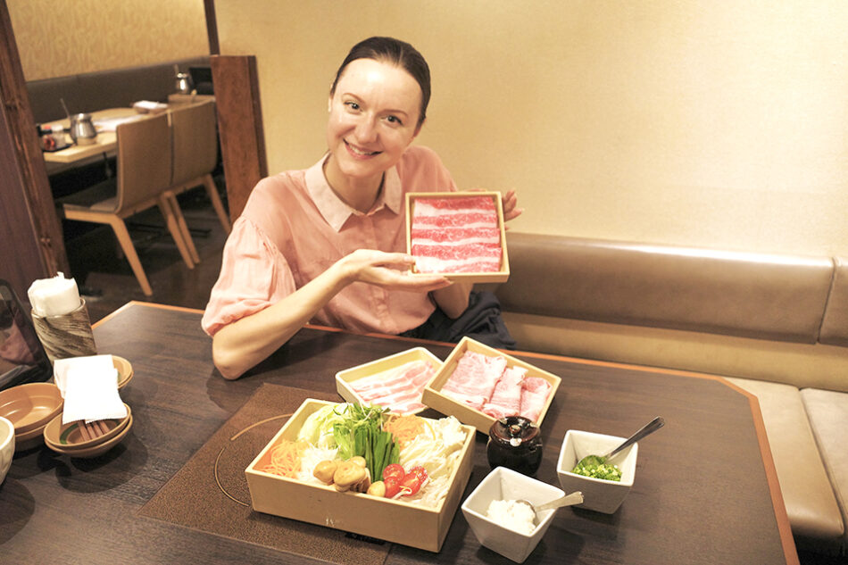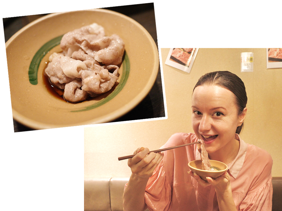 The thinly sliced meat will cook through rather quickly. One of the most popular meats is the Shimofuri Wagyu (a marbled effect with the red meat and the fat evenly distributed). Personally, I love fatty meat because I feel the benefits of collagen!