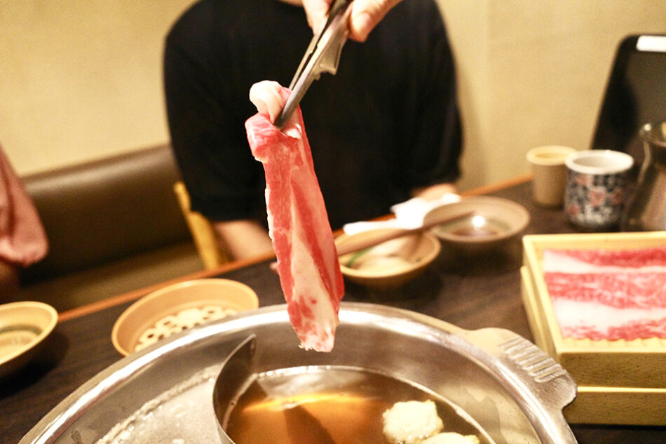 For your first bite, please try the first bite without any sauce, savoring the meat in its shabu-shabu state with the broth.